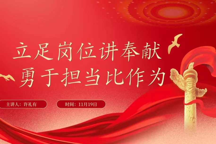 最后,许礼有同志呼吁大家在实践中落实中国共产党员的责任担当与奉献。心中有党、心中有责、心中有民、心中有戒,像榜样看齐,做合格的中国共产党员。“以奋斗诠释责任担当,用奉献书写不凡篇章。”我们新时代的青年人更应将自身发展与国家建设紧密结合,勇担当,敢奉献,选择担责坚守从而实现人生价值。
