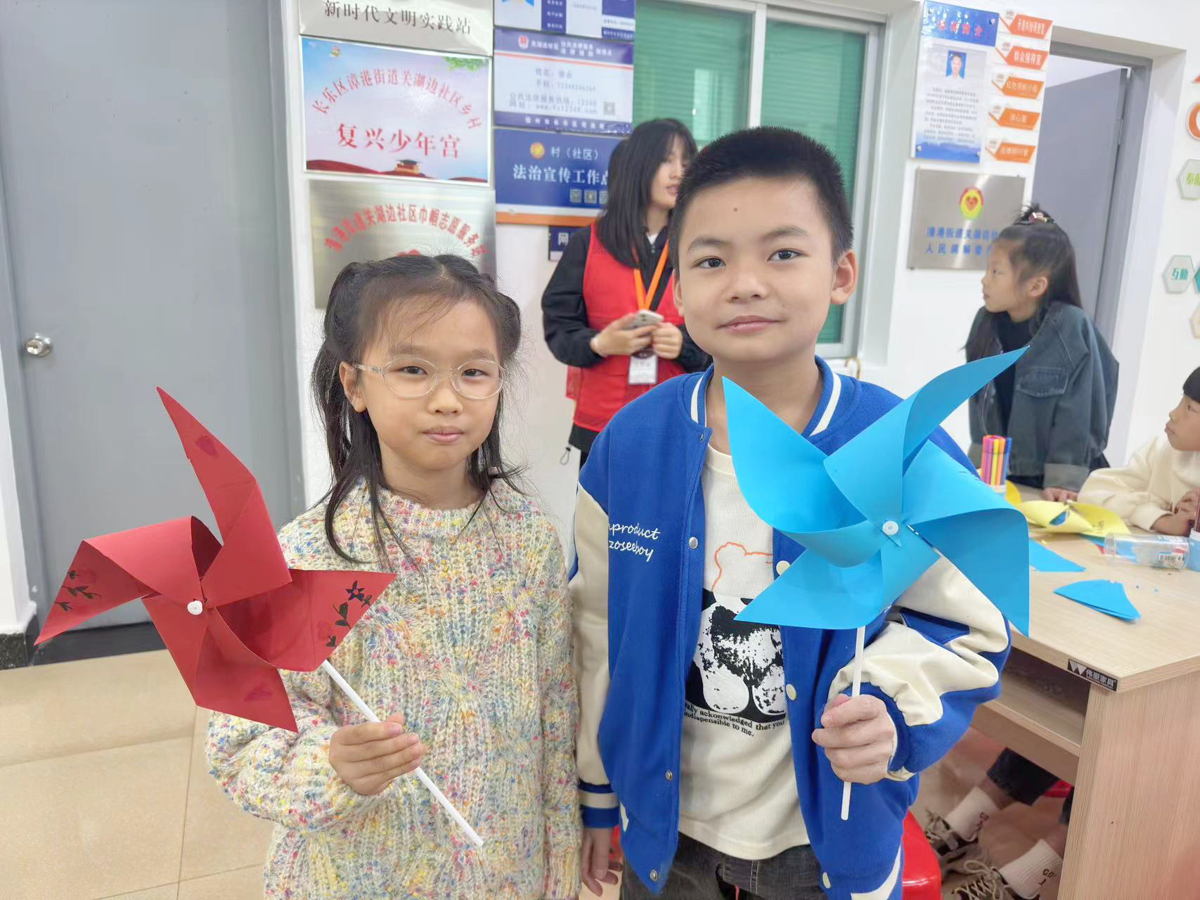 最后,志愿者们引导小朋友们将写有自己理想的卡纸制作成一个个五彩斑斓的风车。在每一个风车里都写下了独一无二的心愿;在每一个风车里都激荡飞扬的对未来的激情;每一个风车里都自存着热烈迸发的童真。在精致的风车里藏着的是小朋友坚定的理想,镌刻的是小朋友童年的懵懂与天真。