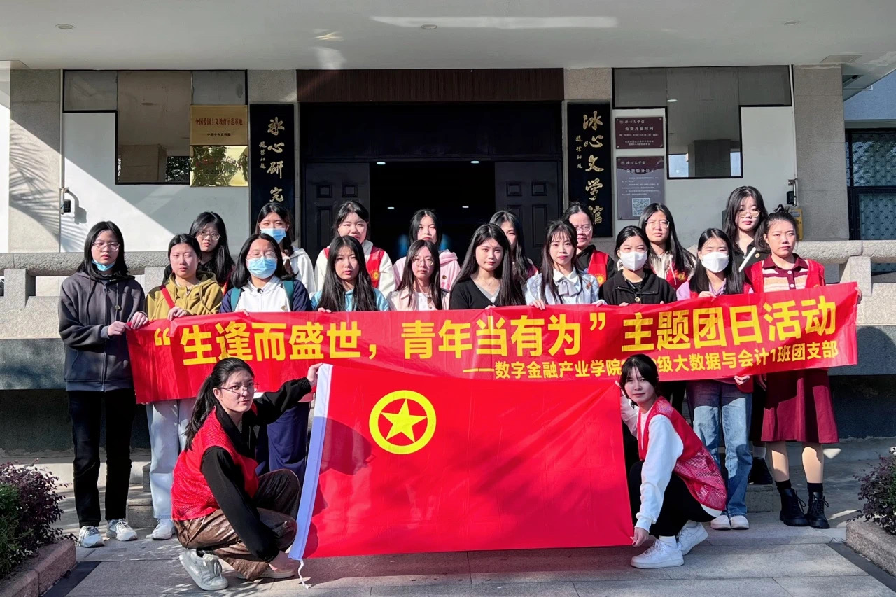 为深入学习贯彻习近平新时代中国特色社会主义思想,全面贯彻落实党的二十大精神,抓好团十九大各项部署要求,增强文化自信、坚定历史自信,提升新时代广大青年群众的思想道德素养,宣传和研究冰心先生的文学成就、弘扬冰心的“爱心”精神。2023年11月17日,数字金融产业学院辅导员郑雯带领2022级大数据与会计1班团支部在冰心文学馆开展“生逢而盛世,青年当有为”主题团日活动。