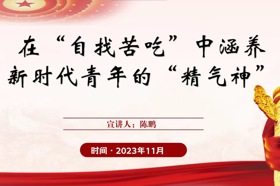 最后,陈鹏同志呼吁学生党员和入党积极分子结合自身实际情况,找准目标,主动作为。志从苦中励,要坚定“能吃苦”的理想信念;才从苦中长,要锤炼“会吃苦”的过硬本领;功从苦中建,要锻炼“敢吃苦”的坚毅品格。青春因磨砺而精彩,人生因奋斗而升华。在“自找苦吃”的过程中迎难而上、不断奋进,在国家和人民需要的地方发光发热,以砥励奋斗、自强不息的姿态创造时代新荣光。