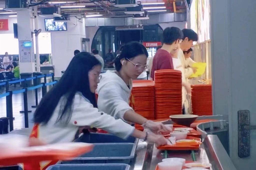 志愿者们佩戴绶带,在用餐高峰期开始的时候积极热情地为大家服务和维持秩序。志愿者们坚守岗位,帮助餐厅工作人员摆放和回收餐盘,清理餐桌,引导用餐同学有序排队。他们认真负责,不畏辛苦,为校园增添了一抹别样的“红色”。