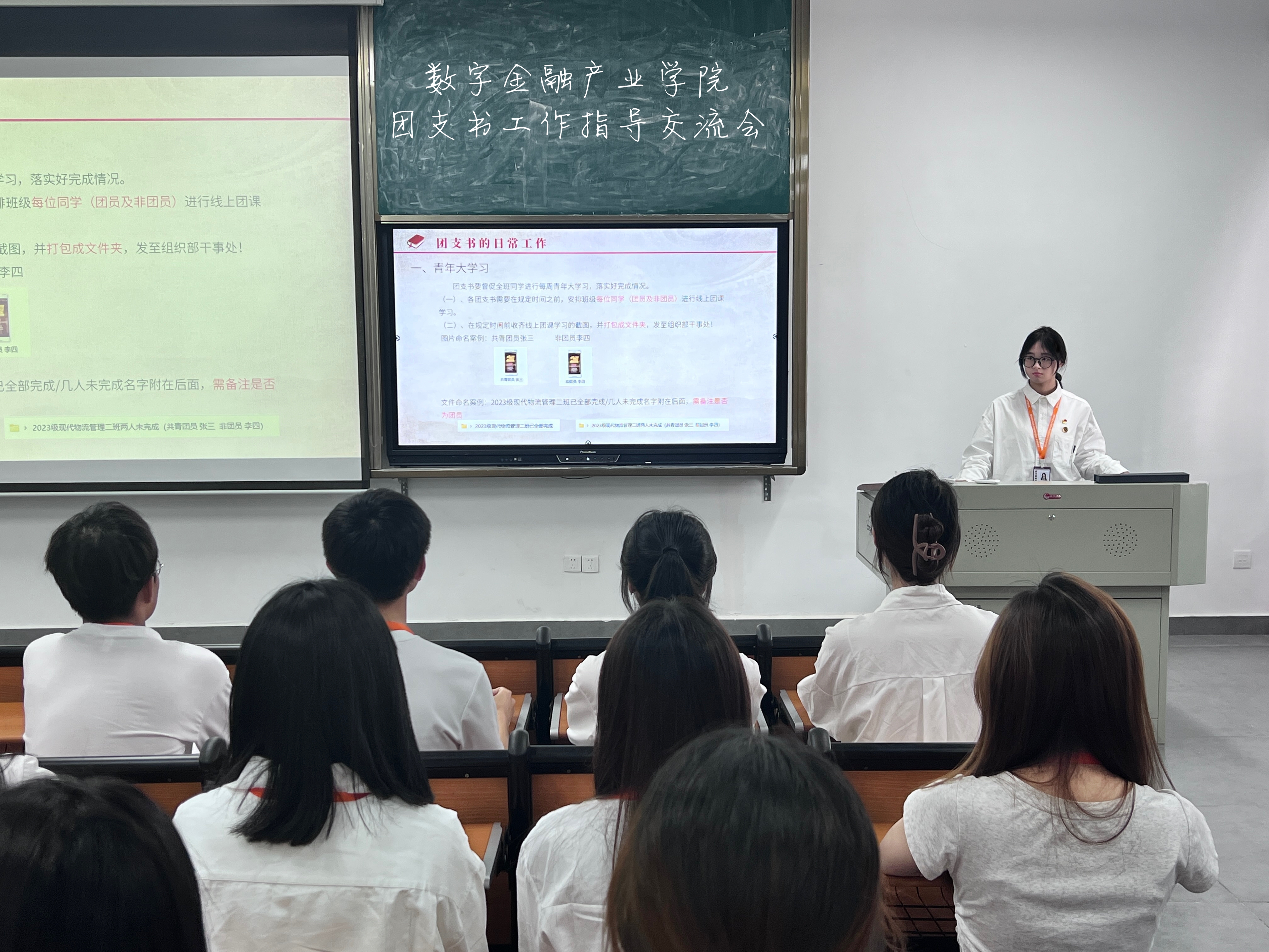 为深入学习贯彻习近平新时代中国特色社会主义思想,进一步深化共青团改革,提升我院基层团支部书记的思想认识、业务能力和实践能力,助力基层团支部建设和发展向深向优,充分发挥团支部的战斗堡垒作用,数字金融产业学院团委组织部于2023年10月29日在教学楼D区302举行2023-2024学年团支书工作指导交流会。