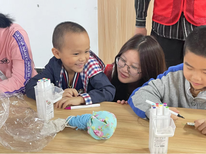 为鼓励孩子用力所能及的行动来表达对老人的尊敬和爱戴,随后孩子们在社工和志愿者的带领下,自己动手用艾草粉制作艾草锤和艾草香包,把亲手制作的贺卡挂在艾草香包上,送给家中长辈,以实际行动践行爱老敬老的美德。