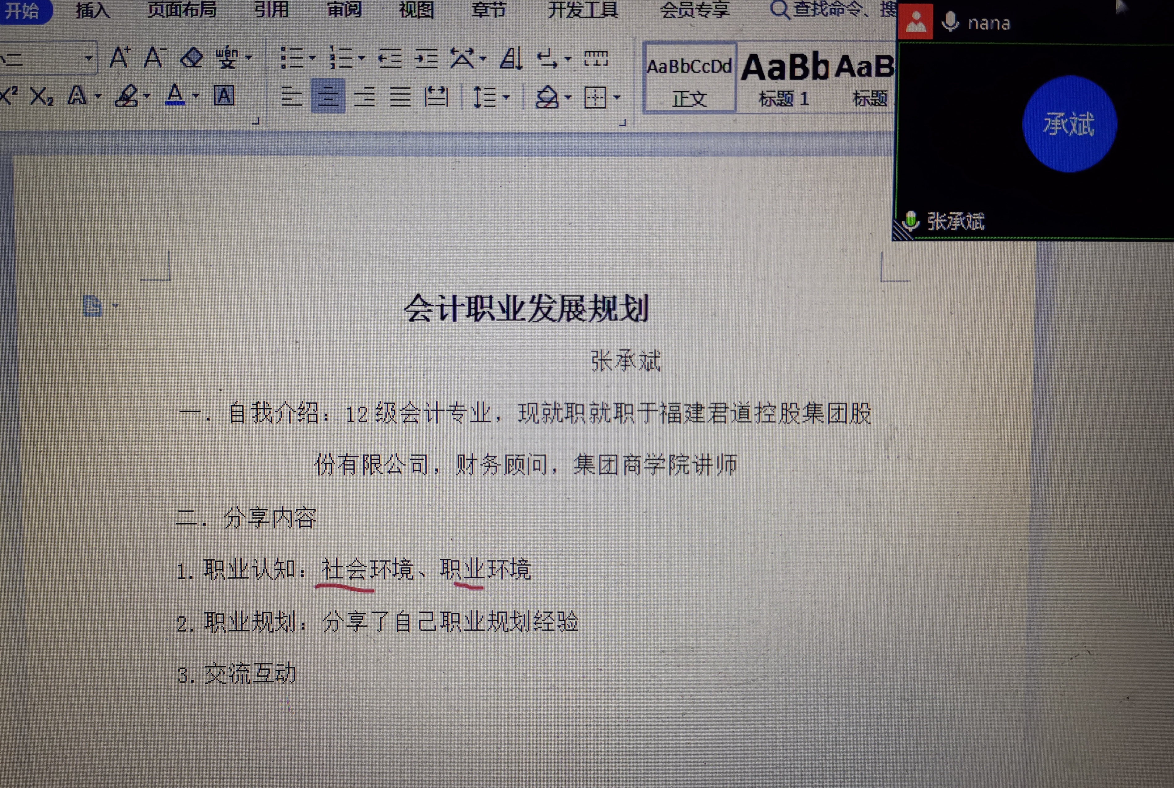 《成本会计》是一门理论性和实践性较强的学科,成本会计是属于财务部门的一个特殊的职位,和一般的会计是有一定的区分的,成本会计人员协助管理计划及控制公司的经营,也就是一个协助管理的职位,在管理方面是可以提出自己的要求的,然后就是要制定长期性或策略性的决策,课堂上为让21级大数据与会计专业的同学更进一步了解会计相关岗位及职业生涯规划,2022年11月23高银娜老师邀请12级会计专业的优秀校友张承斌于日通过腾讯会议在线分享职业发展规划心得体会。