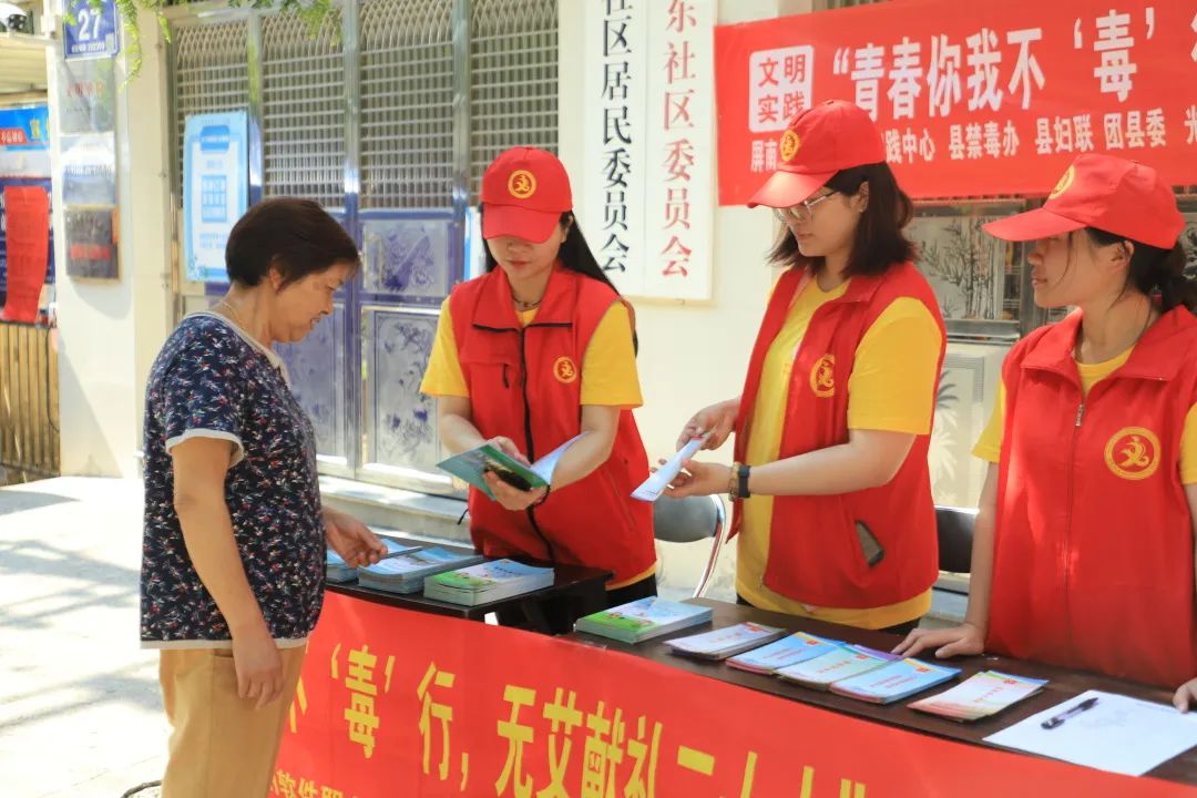 喜迎二十大,以青春实践行动,传播禁毒防艾理念。“小太阳”暑期社会实践队于屏南县城东社区新时代文明实践站门口,对来往社区居民进行禁毒防艾知识的宣传。实践队员们向社区居民们介绍着毒品的危害,讲解着如何预防艾滋病的传播,提高人们对毒品和艾滋病的警惕性,防止受到毒品艾滋病的侵害。