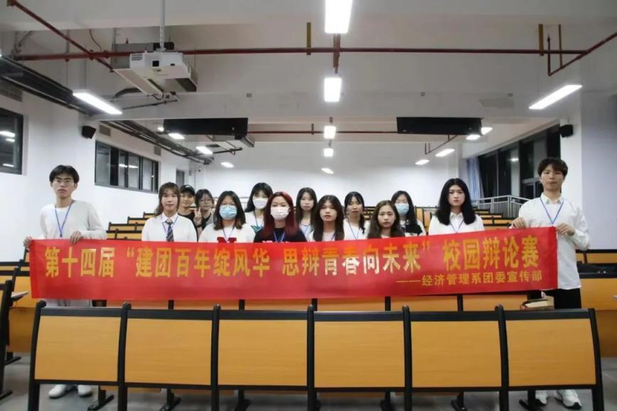 观古今史话,煸今时热点。为繁荣校园文化,推进学风建设,增加同学们的交流,拓展学生思维和锻炼语言逻辑能力。4月24日,经济管理系团委宣传部在教学楼A303举办了第十四届“建团百年绽风华,思辩青春向未来”辩论赛初赛,经济管理系党总支副书记周政超老师、分团委书记张玉梅老师、陈佳莉老师、柯林逸炜老师、郑雯老师、叶雅姿老师担任此次评委。