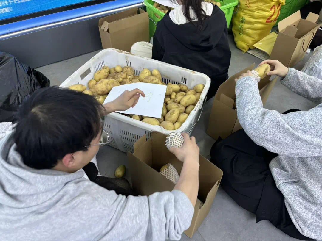 经过“趣耕”劳动教育联合志愿服务队干事们连日的分拣、打包,一颗颗饱满的土豆被精心分装成精美礼盒,送到各院每位老师手中。这份礼盒承载的不仅是新鲜的薯果,更是服务队近一年来躬耕劳作的丰硕成果。劳动的价值在此刻具象化。