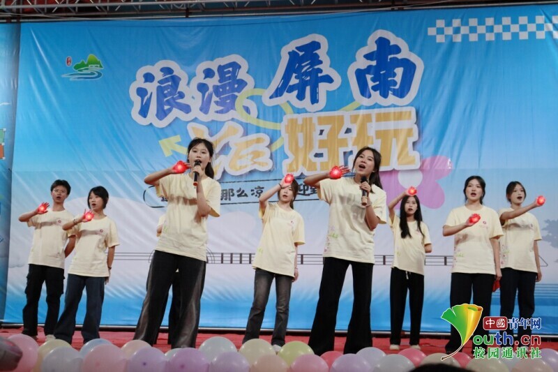 图为“薪火”实践队在文艺汇演上合唱《最好的未来》。 谢凌彬 供图