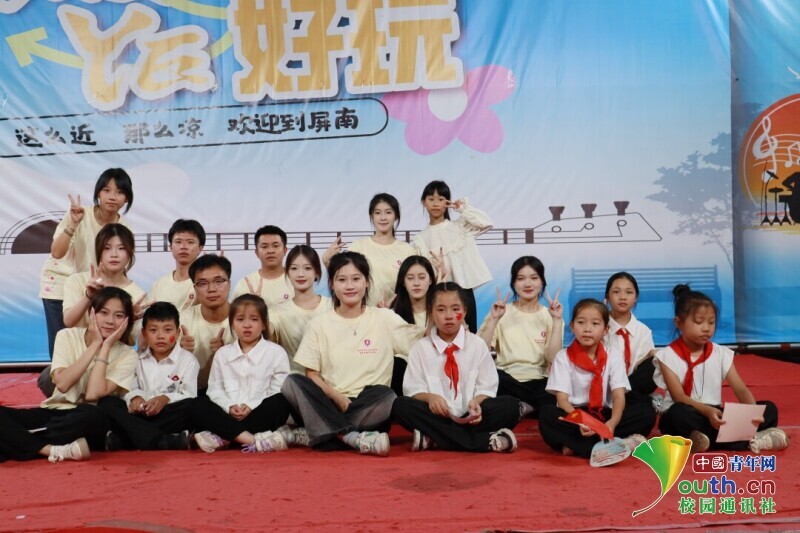 图为“薪火”实践队与小朋友合影。陈雨芯 供图