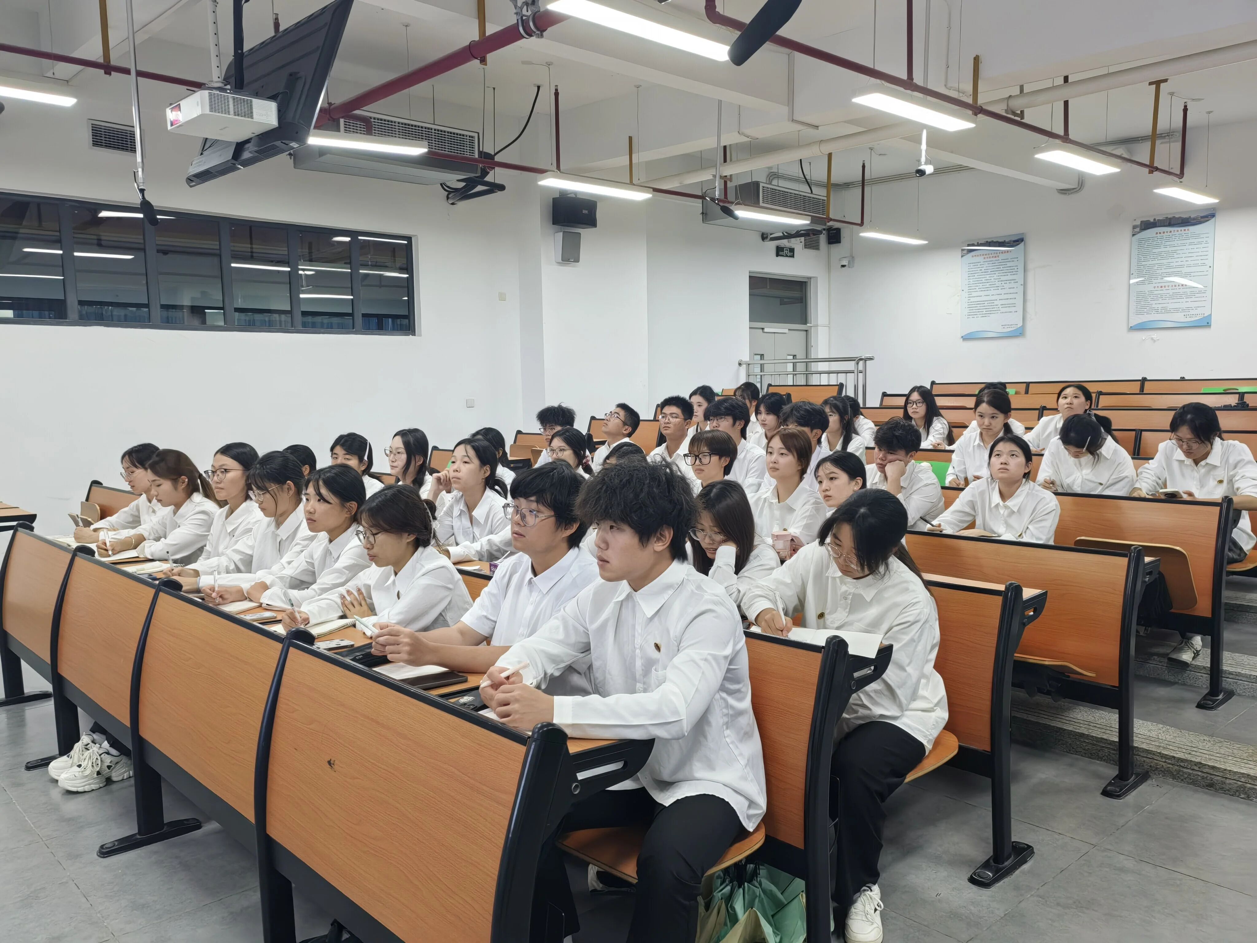 学生们认真听讲并书写笔记