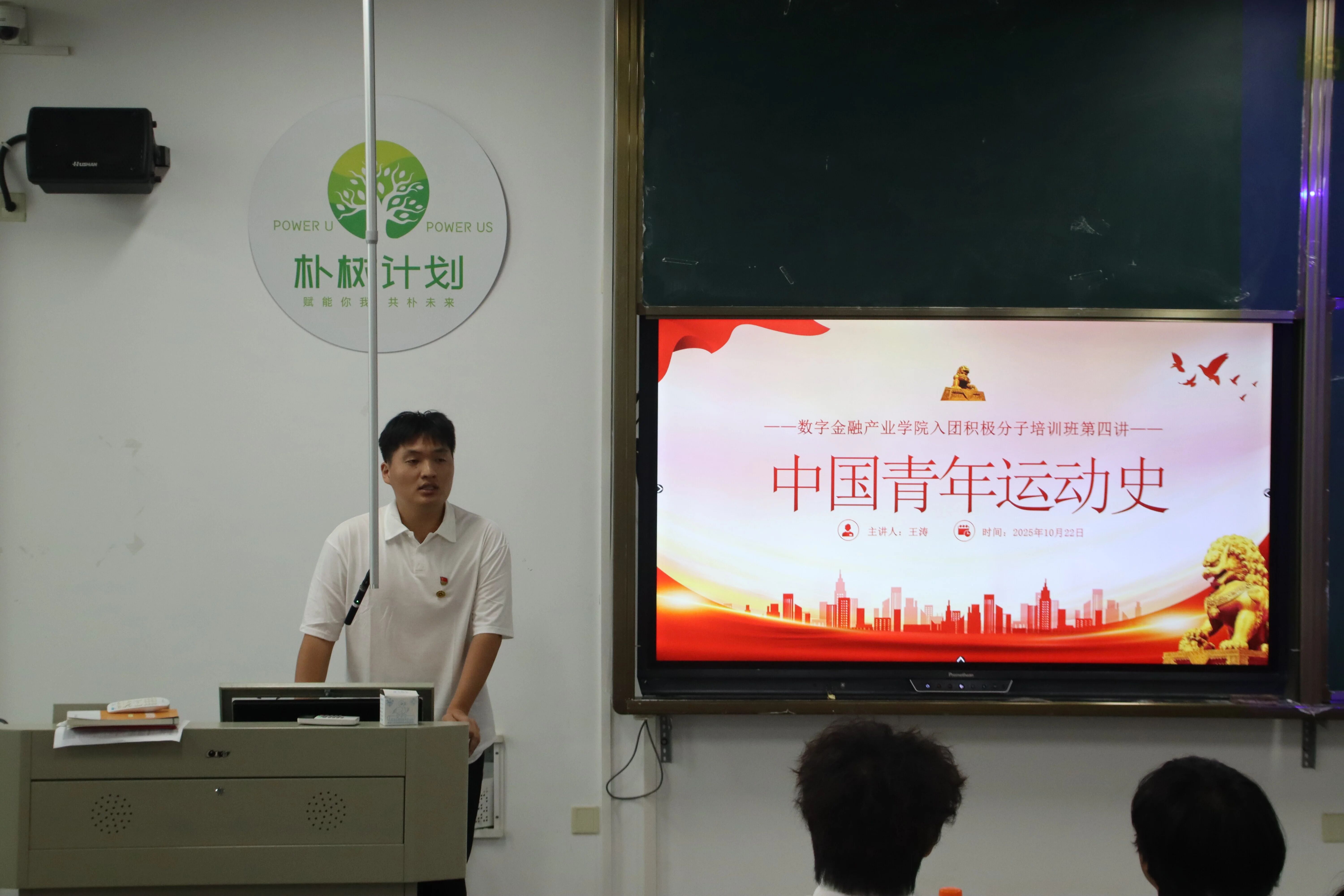 为着力提高入团积极分子的责任感与使命感,进而厚植青年团组织思想基础。10月22日,数字金融产业学院在教学楼A507举行2025-2026学年入团积极分子培训班团课第四讲。本次课程由王涛老师以《新民主革命时期青年运动史》为主题向学员们进行授课。