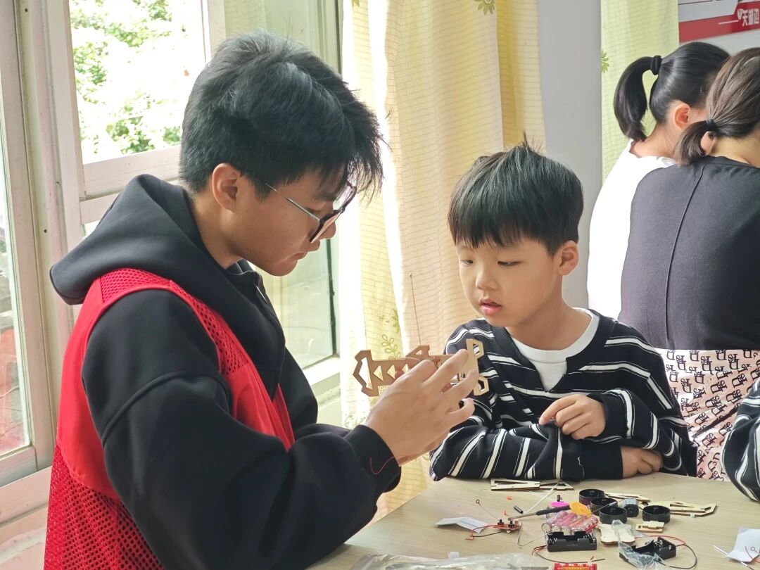 活动现场,志愿者化身科创领航者,以手工电动遥控赛车套件为基础,创新思维为核心,逐一演示赛车底盘搭建、电机安装、遥控模块调试等关键环节。过程中,志愿者针对电路接线规范、车身平衡调整等细节悉心指导,小朋友们专注钻研、主动提问,在协作完成赛车制作的过程中,让“实践、突破”的科技理念在每一处组装细节中传递。