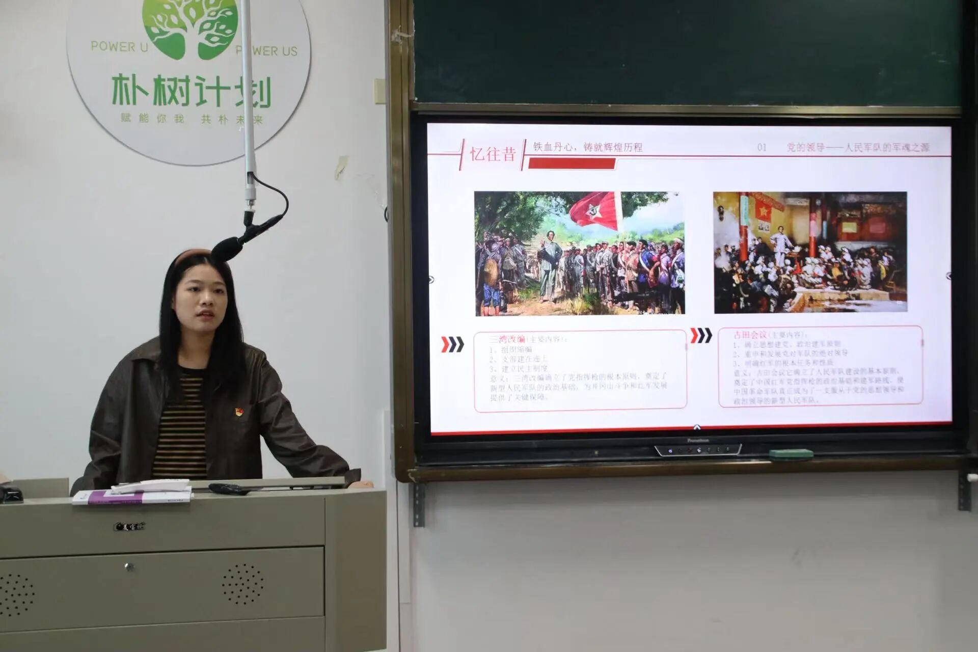 随后,张婉珍老师详细阐述了“忆往昔——铁血丹心”与“铸就辉煌历程”等一系列重要议题,其核心目的在于引导入团积极分子深刻理解和领会,在新时代的伟大征程中,青年一代在中国共产党的坚强领导下,如何以不屈不挠的意志和实际行动,为人民军队的蓬勃发展和壮大贡献出自己宝贵的青春活力和强大力量。通过这些议题的深入探讨,张婉珍老师希望青年们能够铭记历史,传承红色基因,坚定理想信念,勇于担当作为,在新时代的广阔舞台上绽放出更加耀眼的光芒。