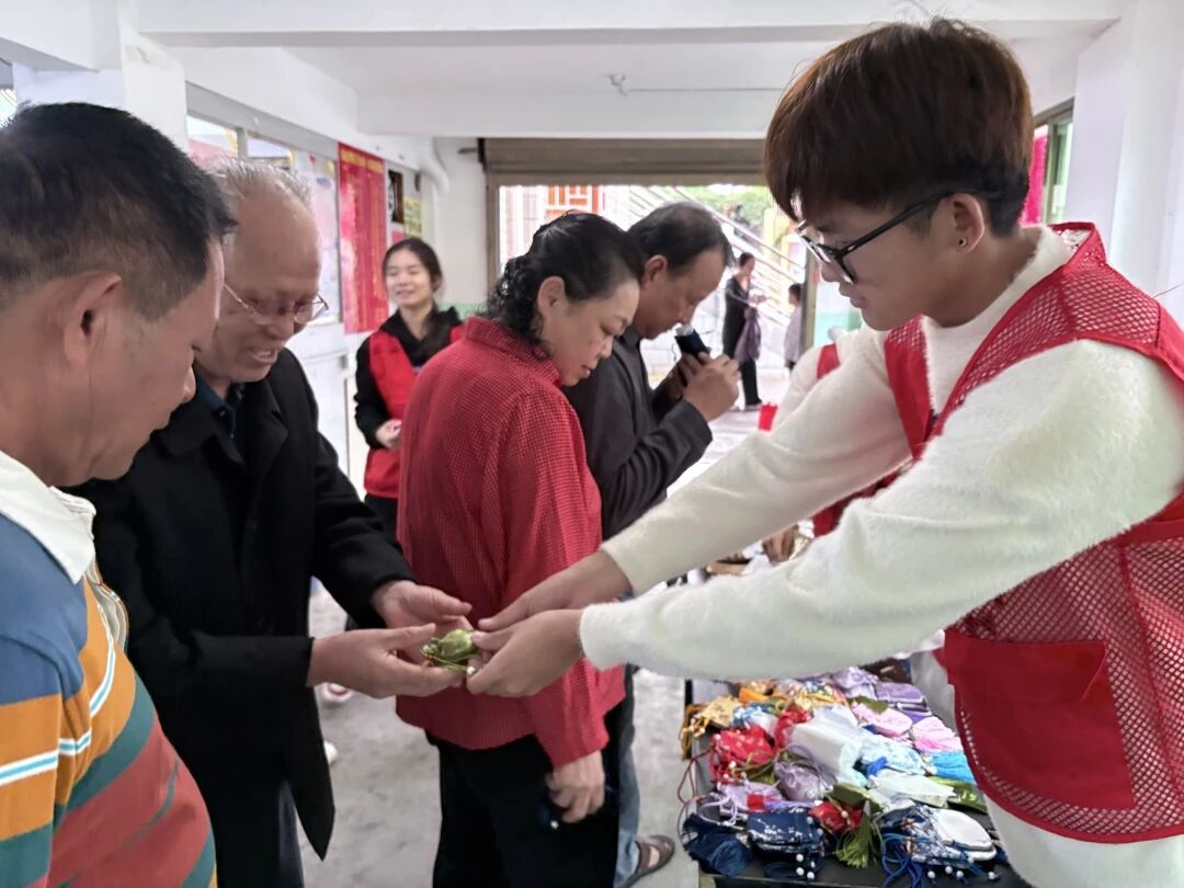 巧手缝囊,情系重阳。重阳佳节之际,志愿者们提前备好香料、棉布等材料,现场引导老人们制作香囊。志愿者在旁耐心协助、悉心指导香料混合步骤,老人们专注投入,于分装中感受手工乐趣。满载暖意的重阳香囊成型,既传承节俗,亦让敬老温情在指尖流转。