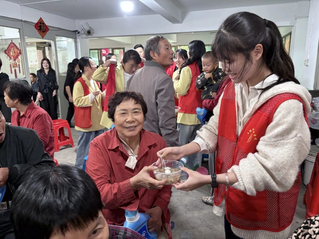 重阳佳节,暖意融融。志愿者们提前筹备,甄选新鲜太平燕与鹌鹑蛋,架锅煮沸清水后放入食材,轻搅观察浮起、显色,把控火候至熟透。煮制完成后,志愿者们将热气腾腾的太平燕分装盛碗,双手奉予现场老人,邀请品尝这碗寓意平安康健的传统美食,于袅袅热气与阵阵香气中传递诚挚关怀与节日祝福,让敬老之情在重阳佳节愈发浓厚。