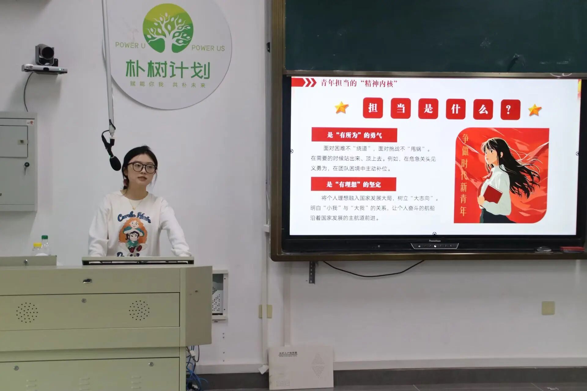 团课伊始,陈雨芯老师着重强调了青年一代肩负责任与担当的重要意义。课程以时代赋予青春的“坐标”为切入点展开,从“把青春献给祖国”的建设时期,直至“科技强国”的当今时代,每一代青年的奋斗方向皆与国家发展保持高度一致,呼吁广大青年积极参与乡村实践,助力乡村振兴,践行环保行动,守护绿水青山。