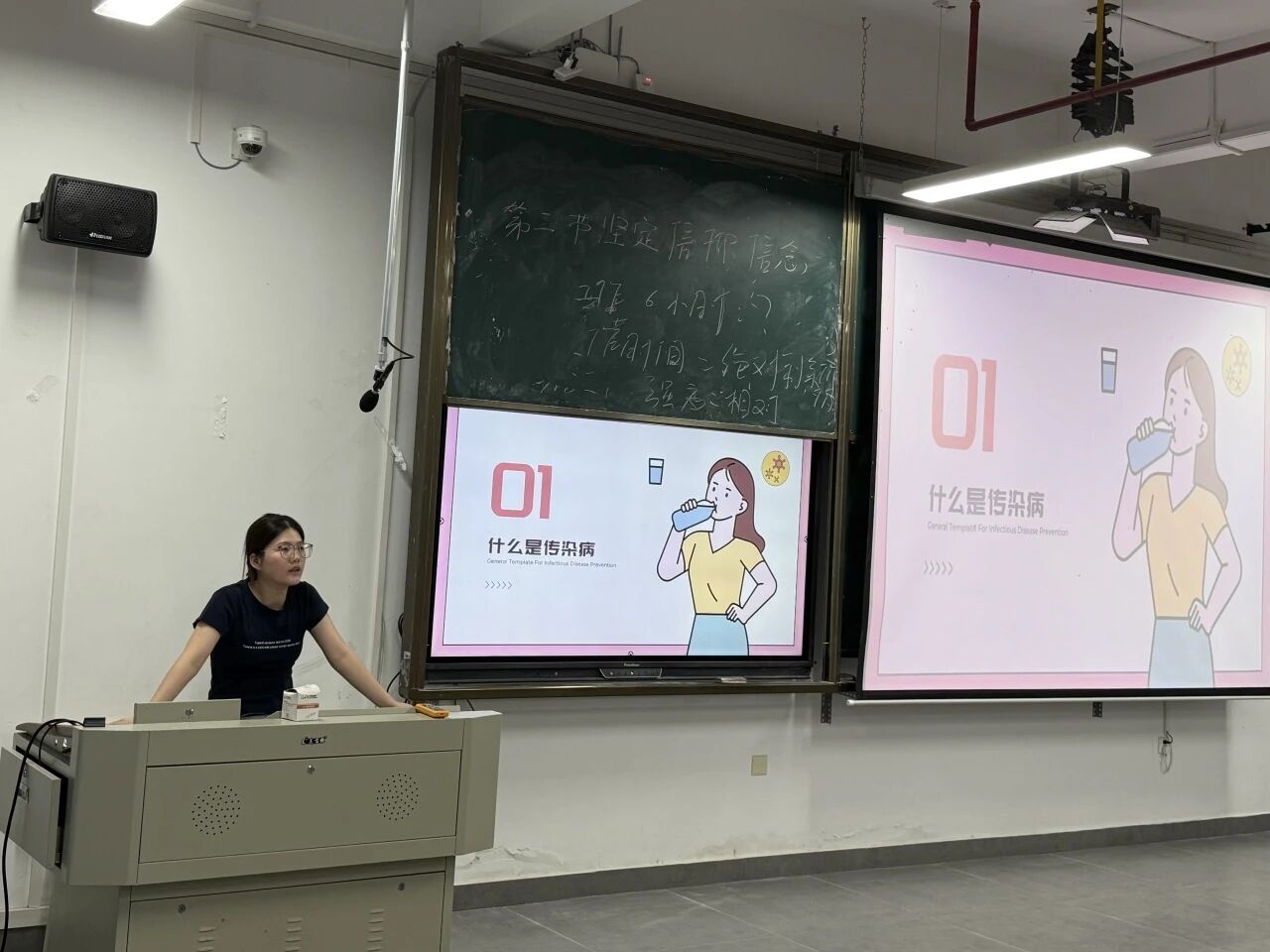 班会伊始,各导员通过PPT图文展示,详细拆解秋冬高发传染病的类别,讲述秋冬季节校园高发的传染病主要集中在呼吸道和消化道两类,传播途径与校园生活场景密切相关。其中,流行性感冒是典型的呼吸道传染病,由流感病毒引起,传染性远强于普通感冒,主要通过飞沫传播,发病后会出现高热、头痛、肌肉酸痛、咳嗽等症状。