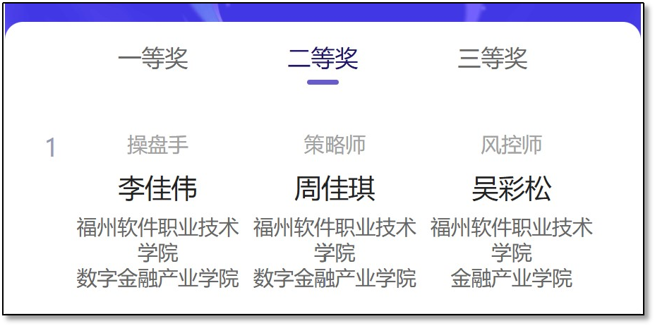 2025年8月22日,第十一届"东方财富杯"全国大学生金融挑战赛圆满落幕。福州软件职业技术学院数字金融产业学院林晓峰与张瑶老师共同指导的参赛团队(成员:李佳伟、周佳琪、吴彩松)凭借出色的金融投资分析能力和团队协作精神,在全国总决赛中荣获二等奖,为学校争得荣誉。