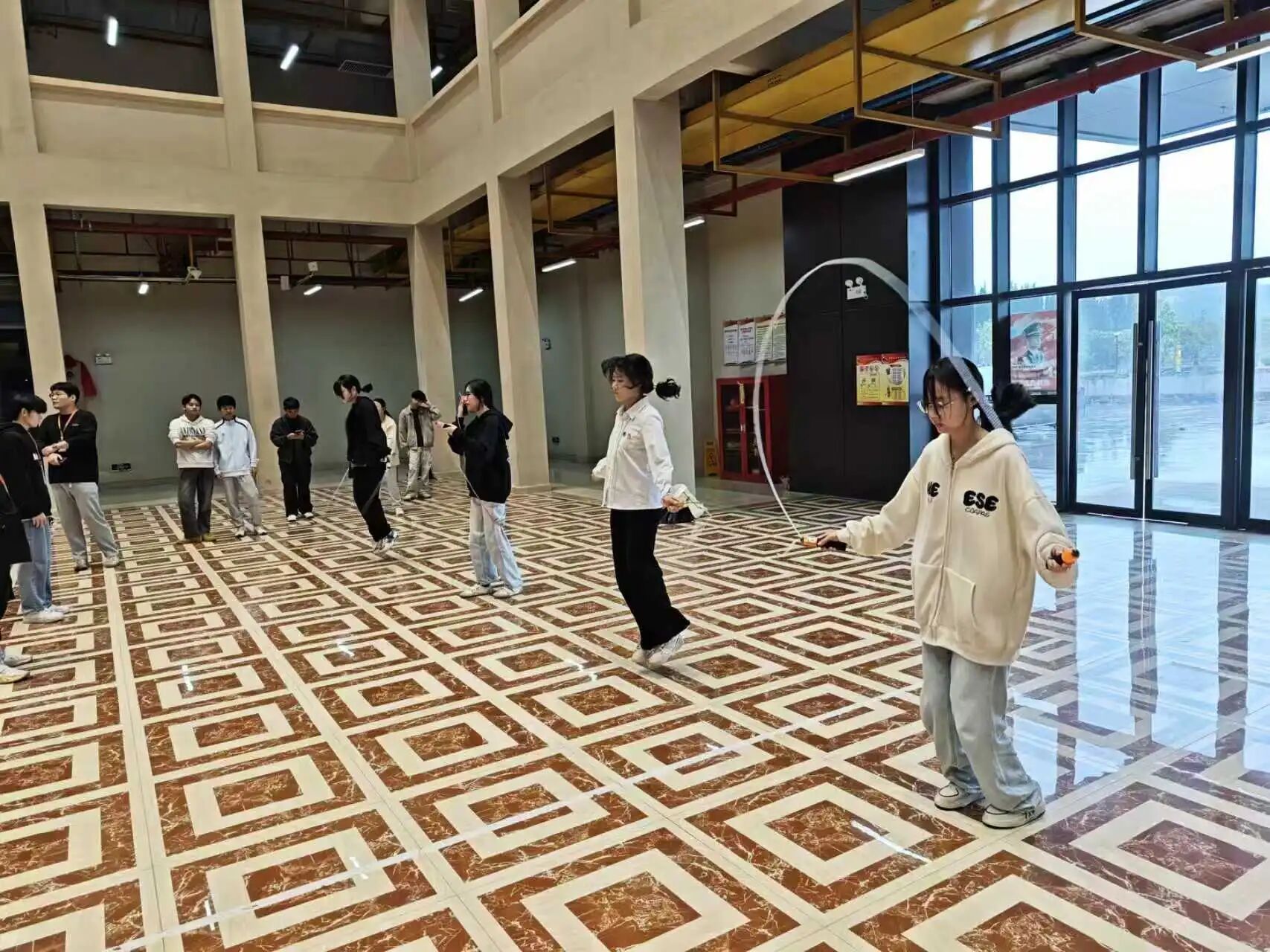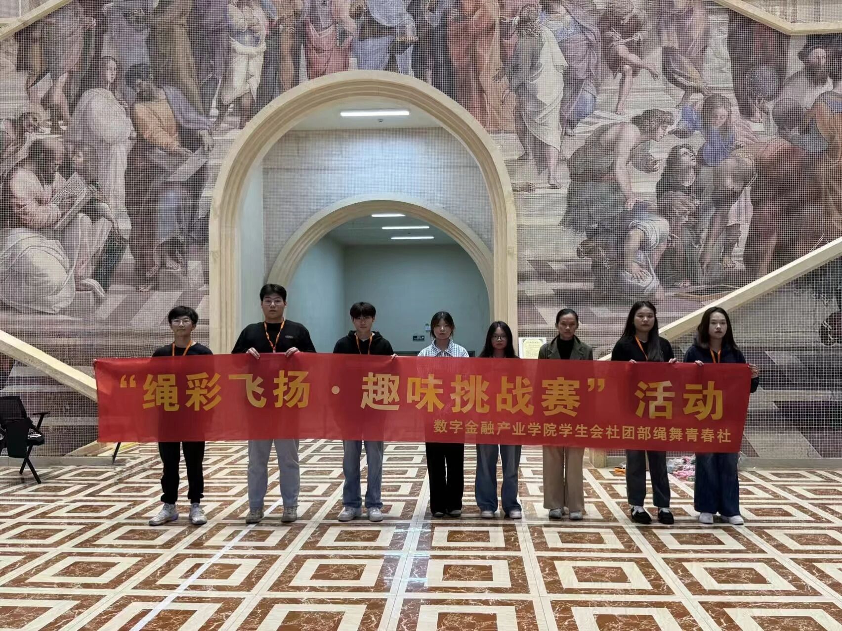 为响应“全民健身”号召,鼓励学生积极参与运动,增强体质、释放压力,营造协作氛围,推动运动习惯养成与活力提升。11月4日,数字金融产业学院学生会社团部绳舞青春社在五四大厅举行“绳彩飞扬·趣味挑战赛”活动。