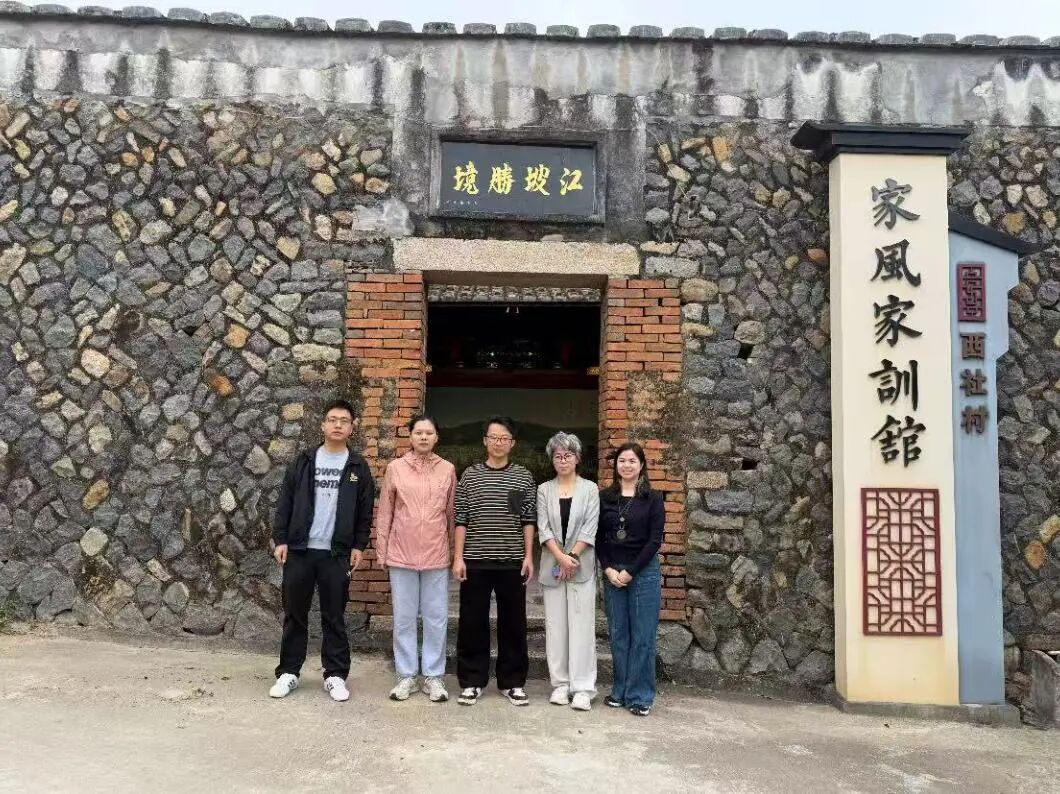 在村支书的陪同下,学院一行实地参观西社村的家风家训馆、 洞江湖溪畔公园和鱼鳞坝等场所。家风家训馆中展示了谢氏先辈事迹和当地革命英雄谢乌姆俤等人的英勇事迹,让优良家风可感可学、红色基因得以传承;西社村优良的生态景观,也为后续校地合作探索“直播+生态旅游”的乡村助农模式奠定了重要基础。