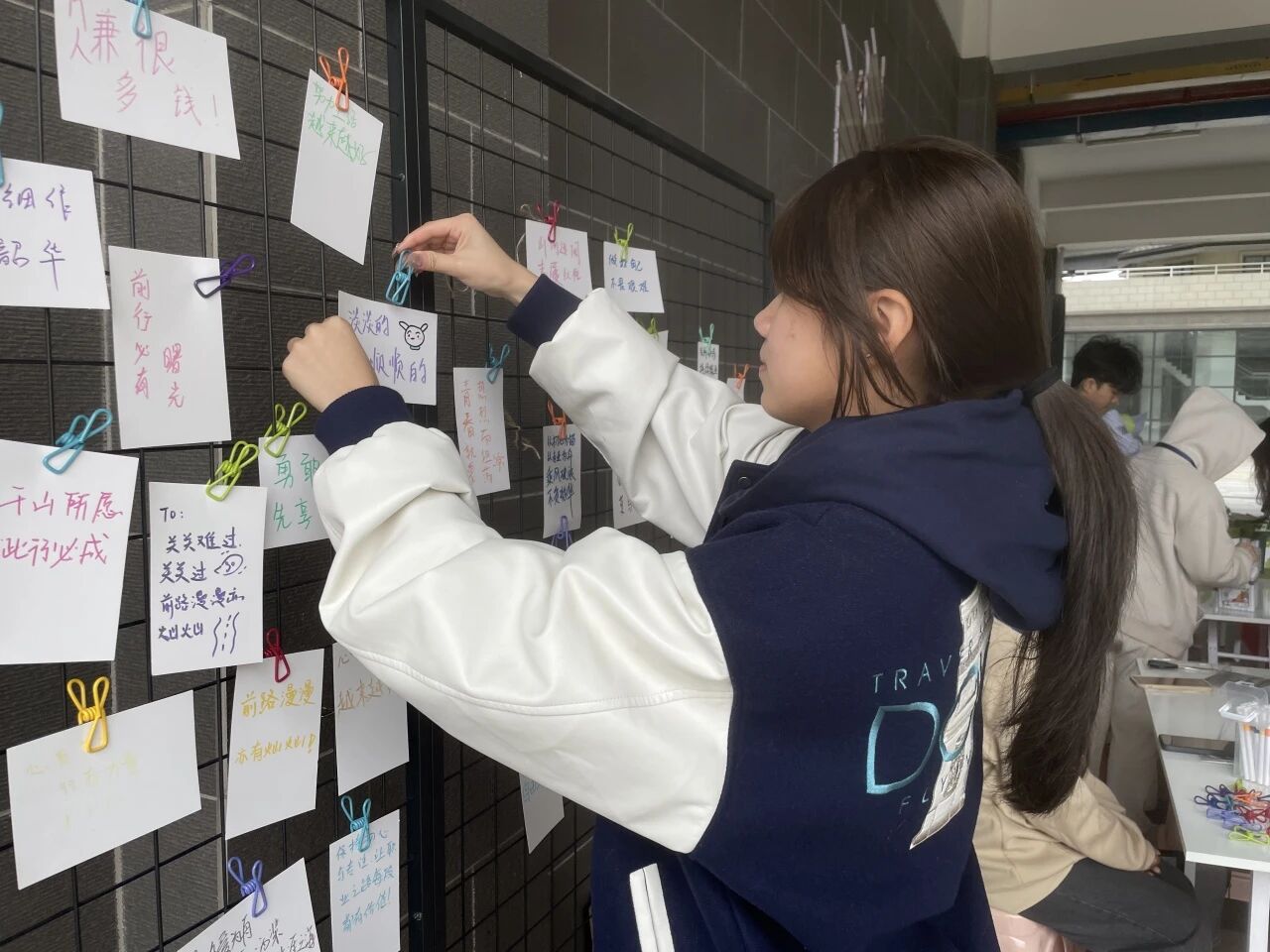 在寄语环节,同学们提笔写下对未来职业的憧憬寄语,字里行间满是对职业生涯的期待与向往。这场活动不仅为学子们搭建了抒发职业理想的温馨平台,更成为一堂鲜活的职业初心课,引导大家锚定心中方向、明确奋斗目标,汲取直面未来的勇气与力量,以坚定信念规划职业道路,践行新时代青年的责任与使命。