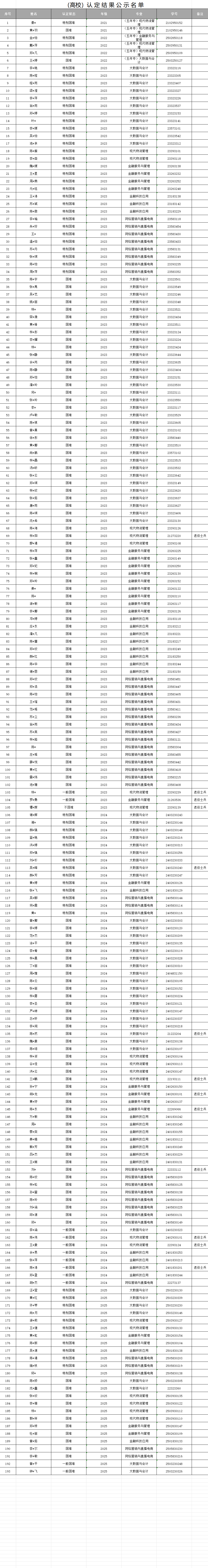 根据福建省教育厅等九部门关于印发《福建省家庭经济困难学生认定办法》(闽教规〔2023〕1号)、《福州软件职业技术学院家庭经济困难学生认定管理办法》(福软学〔2023〕31号)、《福州软件职业技术学院国家助学金管理办法(修订)》(福软学〔2025〕54号)等文件,数字金融产业学院开展2025-2026学年第一学期家庭经济困难学生认定工作,经过前期学生个人申请、班级民主评议、辅导员及院系意见审核,现将初审名单进行公示。在此期间欢迎广大师生以来信(3089603820@qq.com)来访或来电(18558860993)的形式向数字金融产业学院学生资助工作认定小组反映情况、发表看法和意见,公示期:2025年11月15日-11月17日。
