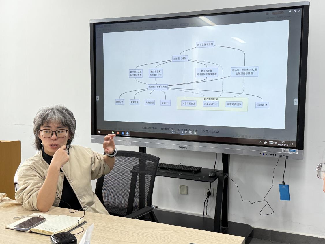 2025年11 月 18 日下午14点30分,数字金融产业学院于教学楼 G602 召开二轮评估整改推进会。会议由学院副院长蔡亮主持,教学质量管理中心杨华钰及学院全体教师参会,围绕专业群建设核心任务,共同学习《数字金融专业群组群逻辑优化与专业群规划论证报告》核心内容,凝聚整改共识、明确建设方向。