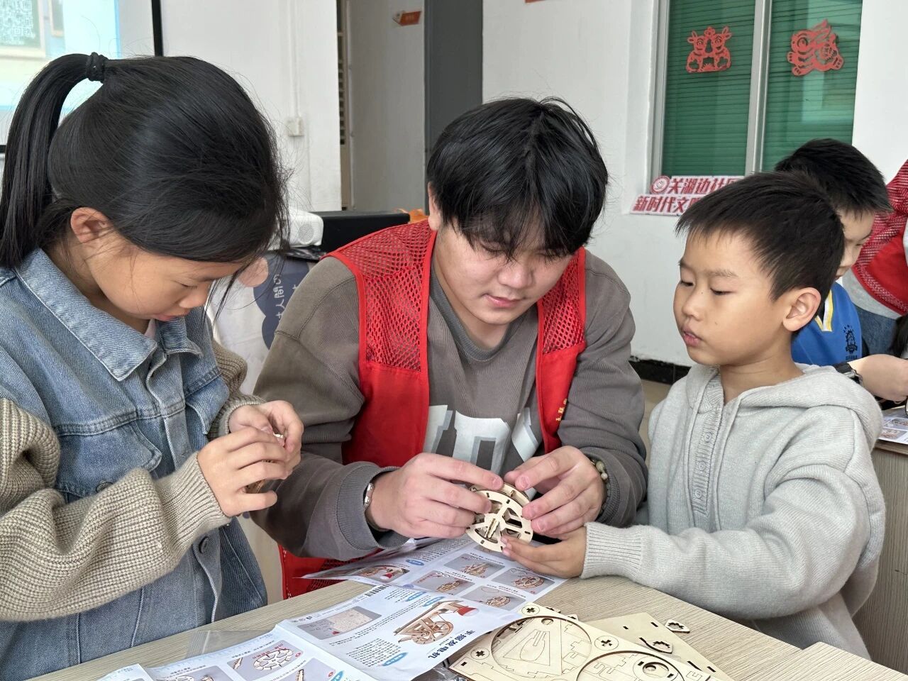 活动现场,志愿者化身科学启蒙导师,以手摇发电机与手工电动风扇为载体,系统演示线圈缠绕固定、电路接口对接、扇叶组装校准等关键步骤,过程中针对电流传导逻辑、机械运转平衡要点细致讲解、耐心答疑,小朋友们踊跃互动,在分工协作完成两款作品的实践中,让科创精神于每一次组装调试中落地生根。