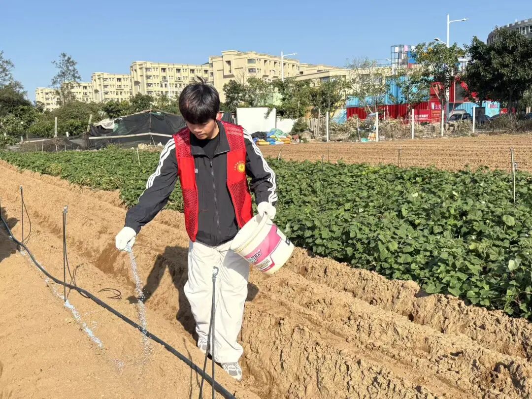 “躬身田间施肥,我真切领悟‘纸上谈兵终觉浅,躬身实践方知真’。在老师的细致点拨下,我摸清了科学施肥的门道,更懂每一份细致耕耘都关乎作物长势。劳动从不是简单的体力付出,而是让知识落地、让心性沉淀的成长之路。”